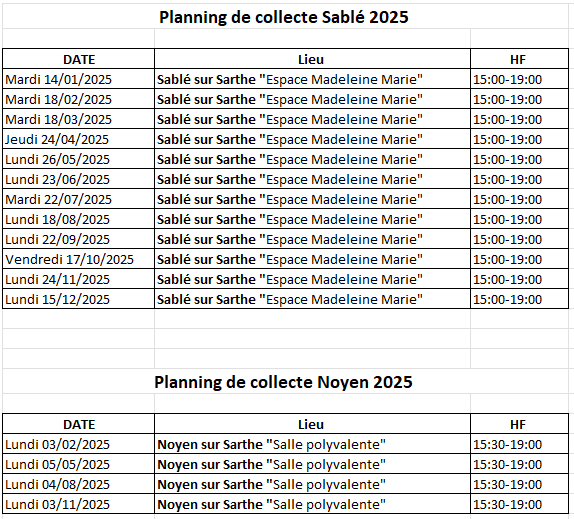Dates des collectes de Sang :